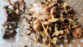 気が重かった理由は、去年収穫した栗がまだ残っていたからです。収穫した栗は冷蔵庫で熟成させ、一ヶ月位した頃に茹でて中身をほじくり出す。その実を冷凍させ、頃合いを見て加工して食べています。その作業は毎年同じで、解凍した茹栗で栗きんとんとマロンムース作る。あと、生栗の皮を剥いて冷凍保存している。こちらは、栗ご飯用として。