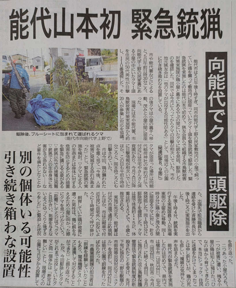 11月5日 午後1時すぎ、能代山本では初となる「緊急銃猟」が行われました。秋田県では4例目となりました。