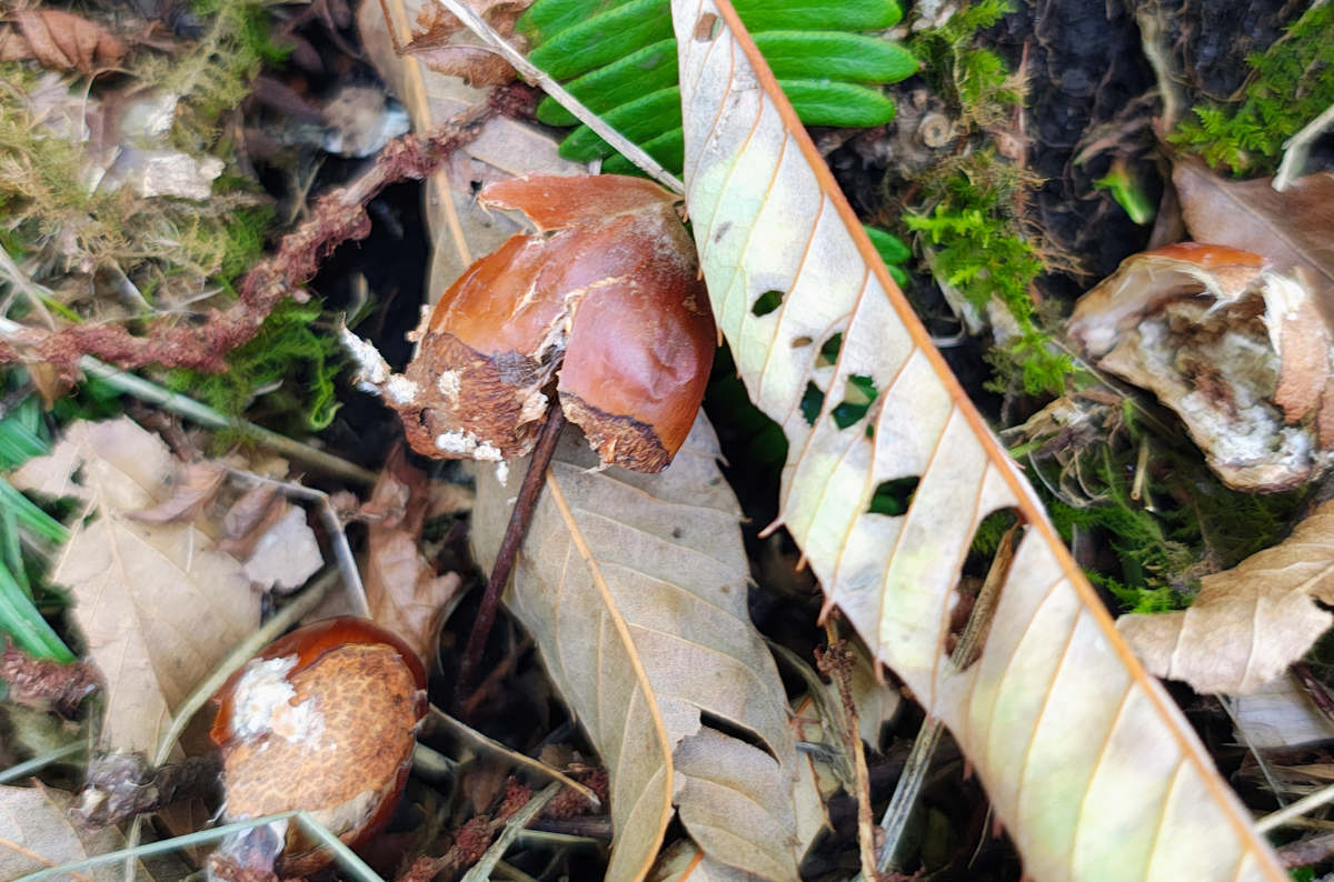 動物による食べ殻の実が数多く散らばっている。しかも、型の良い栗ばかりが食べられている。動物にとっても、型の良い方が食べ易いだろう。そんな空の実に混じって・・・