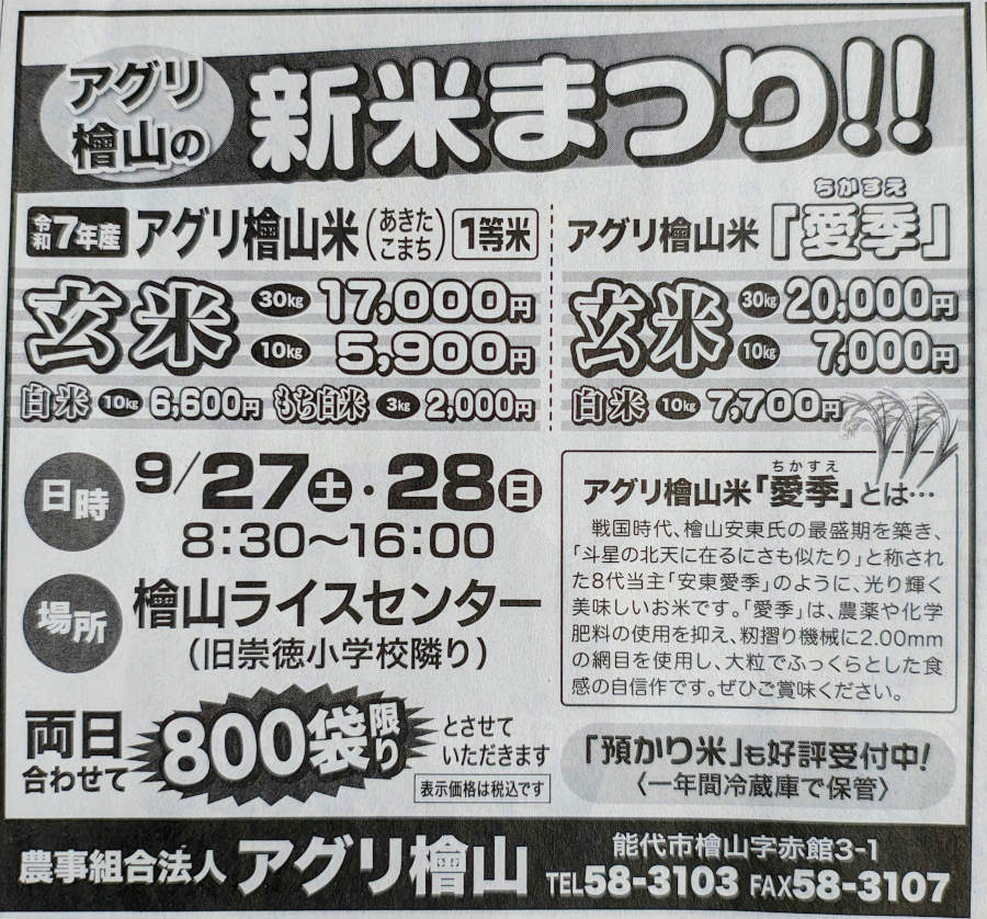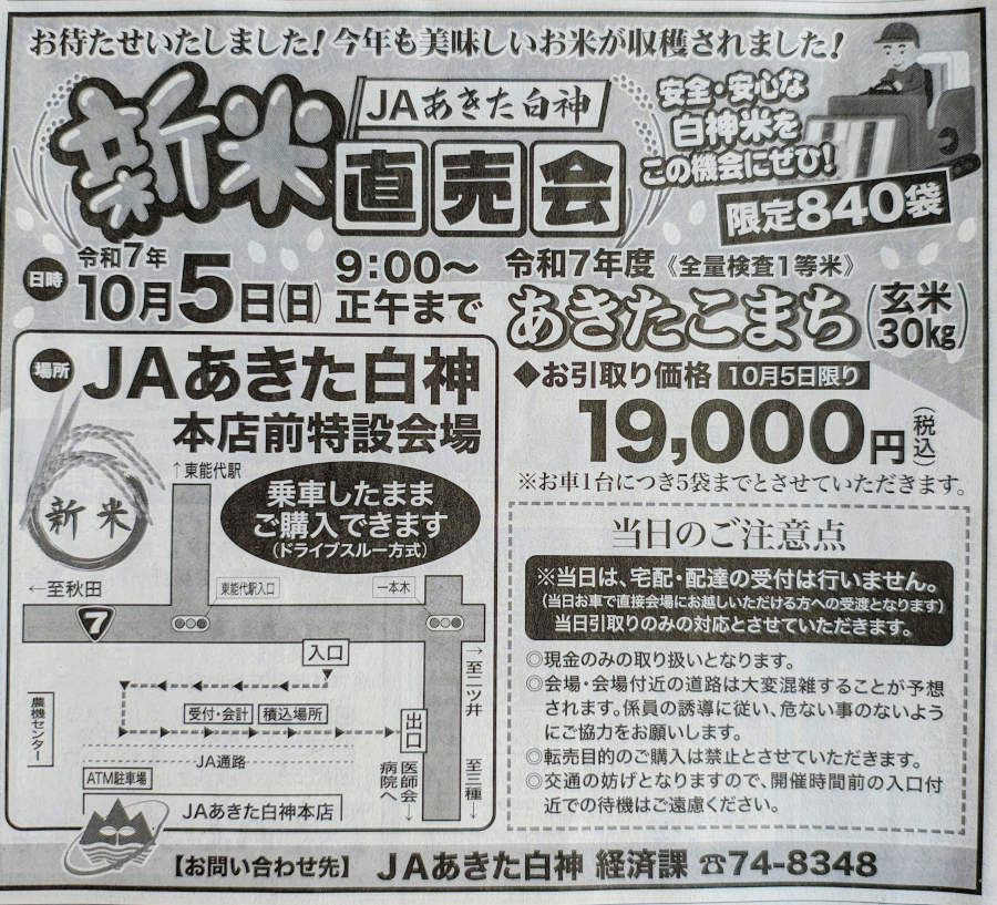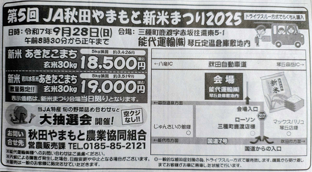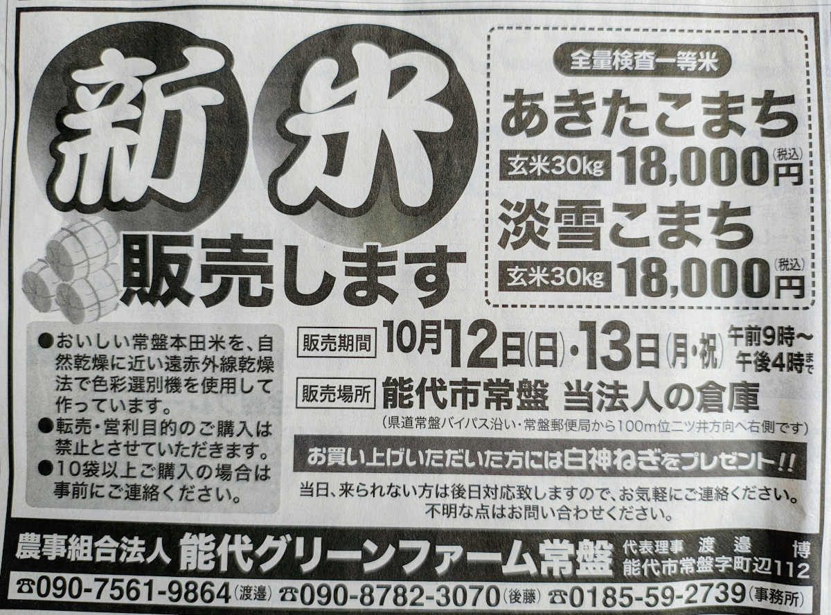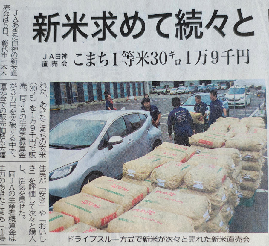 能代山本では、9月末から新米の販売が大々的に行われていました。