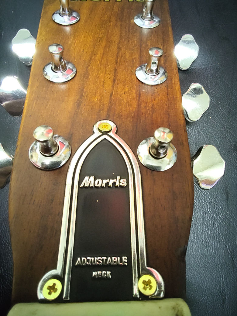 Morris w25 1973年製 25000円のギターでした。物の良し悪しは分からなく、見た目が良くて楽器店に奨められるままに購入した。今見ても、木目のキレイなギターだと思います。 高校生になって「Bob Dylan」等の洋楽を聞きコピーをしていたが、段々とRockに傾いて行き、社会人になってからはギターを弾く事が無くなった。しばらくは部屋の隅に置いてあったが、結婚を期に物置に仕舞い込んだままであった。社会人になってからは新しい事を始めようと思い何度かギターを再開しようと思ったが、結局その余裕もなく一度も触る事は無かった。