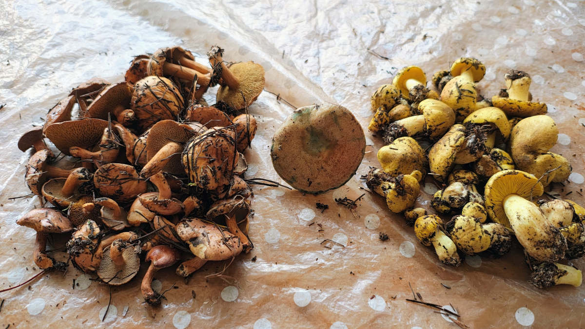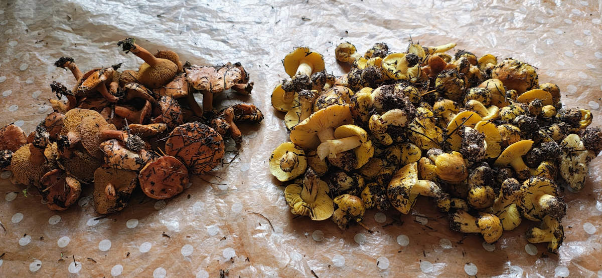 左がイクジ、中央がハツタケ一個、右がキンダケです。イクジの時期は終わったと思っていたのですが、形や質の良い物が採れました。キンダケの量は少なく、計ってみると150g位ありました。産直で販売されていたキンダケが100g・650円だったので、1,000円位の価値になります。産直を覗いた時にも扱っている量が少なかった。やはり、時期的に早かったのだろうか?